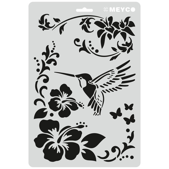 Schablone Kolibri mit Blüte