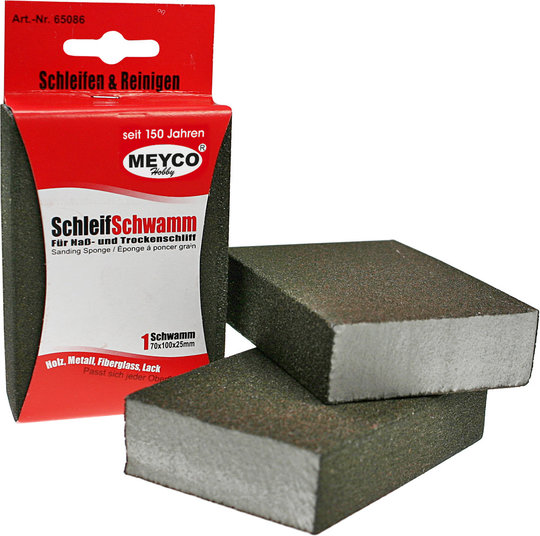 Hochwertiger Schleifschwamm Für Naß- und Trockenschliff. Durch seine flexible Form passt er sich optimal an Kanten, Rundungen und unebene Flächen an – ideal für Werkstatt, Bastel- und DIY-Projekte. Schleifschwamm